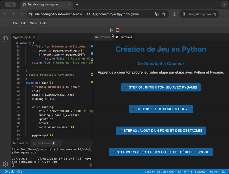 Du jeu vidéo à la data science, en passant par le web. Tout tourne dans le navigateur, sans rien installer.